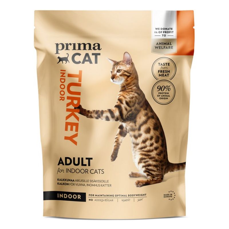 PrimaCat Kalkkunaa aikuisille sisäkissoille on lihaisa kissanruoka kissasi päivittäiseen ruokintaan. Me tiedämme, että kissan ruokinta on taitolaji; sen vuoksi tämän kuivaruuan maku tulee tuoreesta kalkkunasta, joka houkuttelee lihansyöjäsi ruokakupin ääreen.