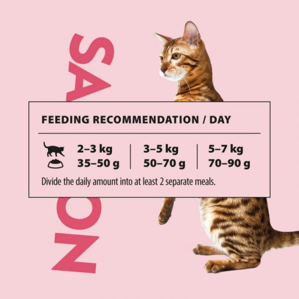 Kissan ruokkiminen on taitolaji, ja haluamme tarjota siihen parhaan mahdollisen avun – siksi kuivaruoassamme käytetään tuoretta, kissaa luontaisesti houkuttelevaa kalaa. Lohi on myös erinomainen Omega-rasvahappojen lähde ja sen luontaisesti korkeampi Omega-3-pitoisuus tasapainottaa ruoan rasvahappokoostumusta. Viljaton PrimaCat-kissanruoka sopii kaikille sisäkissoille, mutta sen korkea liha- ja energiapitoisuus antaa virtaa myös hieman aktiivisimme kotikissoille sekä nuorille kissoille. Viljat on korvattu vaihtoehtoisilla, hyvin sulavilla hiilihydraatin lähteillä, jotka sopivat usein myös herkkävatsaisille kissoille.