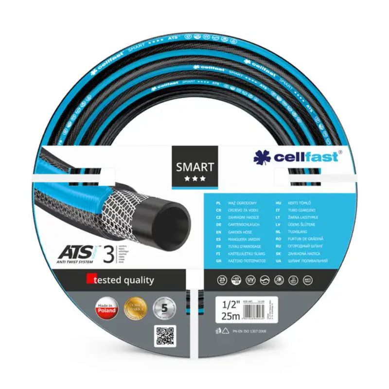 Kiertymätön kolmikerrosletku. Cellfastin ATS variant trikoo vahvistukset letkussa.