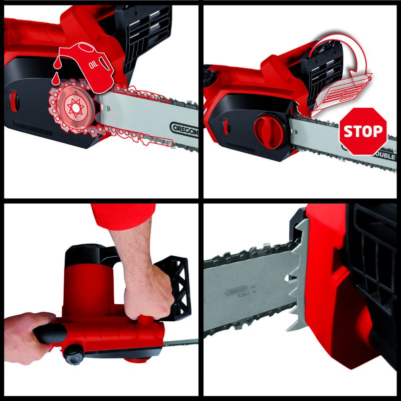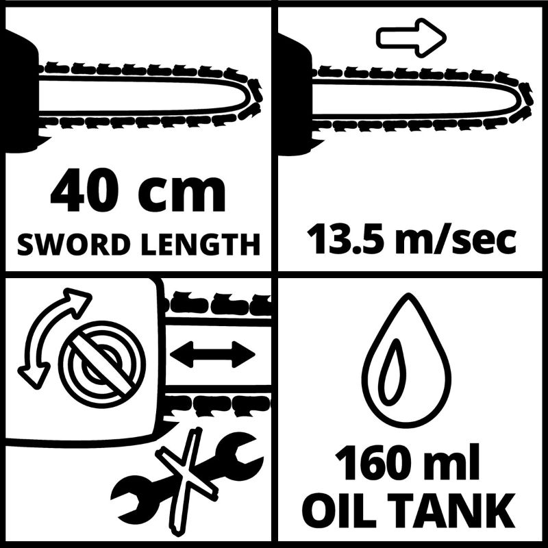 Einhell GH-EC 2040 ketjusaha on kätevä sähkökäyttöinen saha monipuoliseen puunkäsittelyyn. Sähköketjusahalla on helppo tehdä polttopuut ja saha soveltuu myös pensaiden harventamiseen. Sähkökäyttöinen ketjusaha on varusteltu kestävällä ja pitkäikäisellä metallivaihteistolla. Turvallisessa ketjusahassa on ergonominen kahva, mekaaninen pikaketjujarru, takapotkusuoja sekä metallinen kaarnapiikki. Ketjusahan huoltaminen onnistuu helposti ilman erillisiä työkaluja, sillä moottorisahan ketjun saa vaihdettua ja kiristettyä moottorisahan rungosta ilman työkaluja.