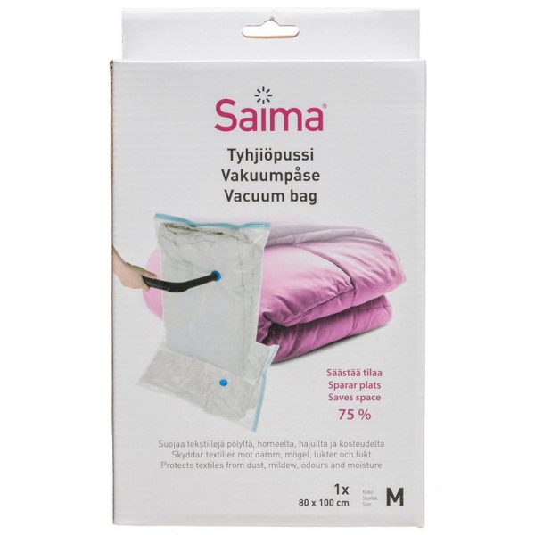 - Saima tyhjiöpussit ovat kätevä ja nopea tapa säästää tilaa varastoinnissa