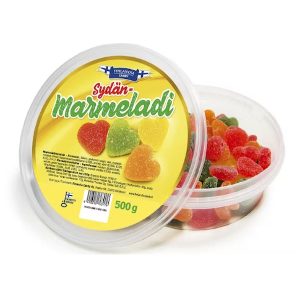 Sokeri, tärkkelyssiirappi, vesi, hyytelöimisaine (E 440), happamuudensäätöaine (E 330), aromit, värit (E141, E160a, E120).