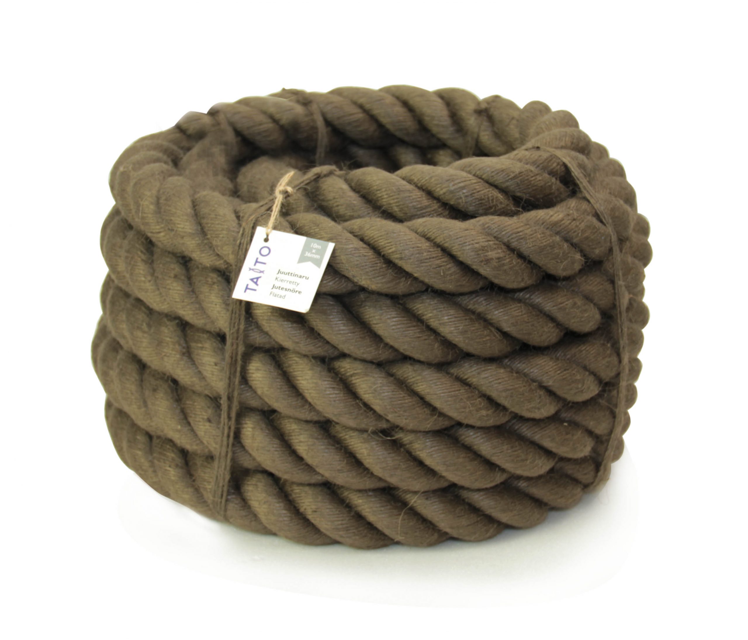 Ruskeaksi värjätty juuttiköysi sopii monenlaiseen sisustukseen niin ulkona kuin sisällä. Köysi sopii myös hyvin terassikaiteiden valmistamiseen.