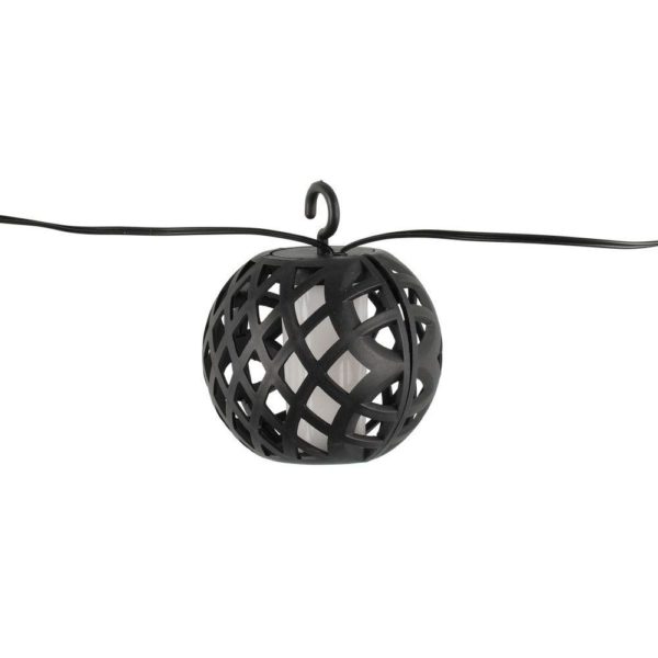Kymmenen liekkilampun valoketju. Lamput ovat pallon muotoisia ja jokaisen pallon sisällä LED-liekkivalopolttimo, joka välkähtelee kuin oikea liekki. Aurinkopaneelissa on hämärätunnistin, joka sytyttää valot hämärän tullen ja valot sammuvat automaattisesti noin 5 tunnin käytön jälkeen. Aurinkopaneelissa on ON/OFF -kytkin. Aurinkopaneeli on varustettu maapiikillä. Valoketjun kokonaispituus on 2 m ja lamput ovat 20 cm välein. Ensimmäisen valaisimen ja panelin välinen johto on 2 m.