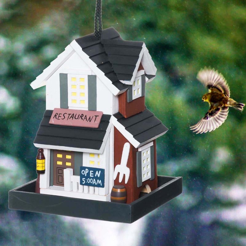 Tyylikäs ripustettava lintulauta esimerkiksi kodin pihapuuhun! Ravintola-jyväsyötin on kekseliäs lintujen ruokintapaikka, johon on hyvä tarjoilla siemeniä, pähkinöitä ja muita herkkuja pihapiirin pikkulinnuille.