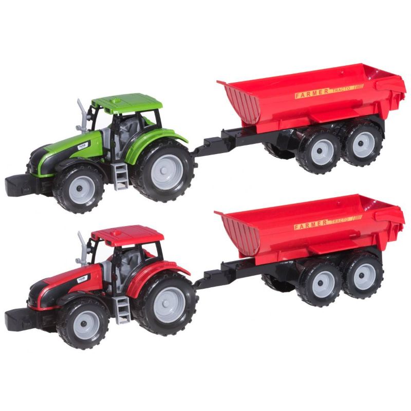 Lelutraktori irrotettavalla trailerilla, jonka kyytiin mahtuu runsaasti hiekkaa. Leikkiauto sopii erinomaisesti hiekkalaatikolle, sillä sen suuret renkaat pyörivät erinomaisesti hiekalla. Traktorissa on aukeava luukku ja peräkärryllä pystyy kipata kyydissä olevaa hiekkaa. Traktorilla on kaksi värivaihtoehtoa vihreä ja punainen.