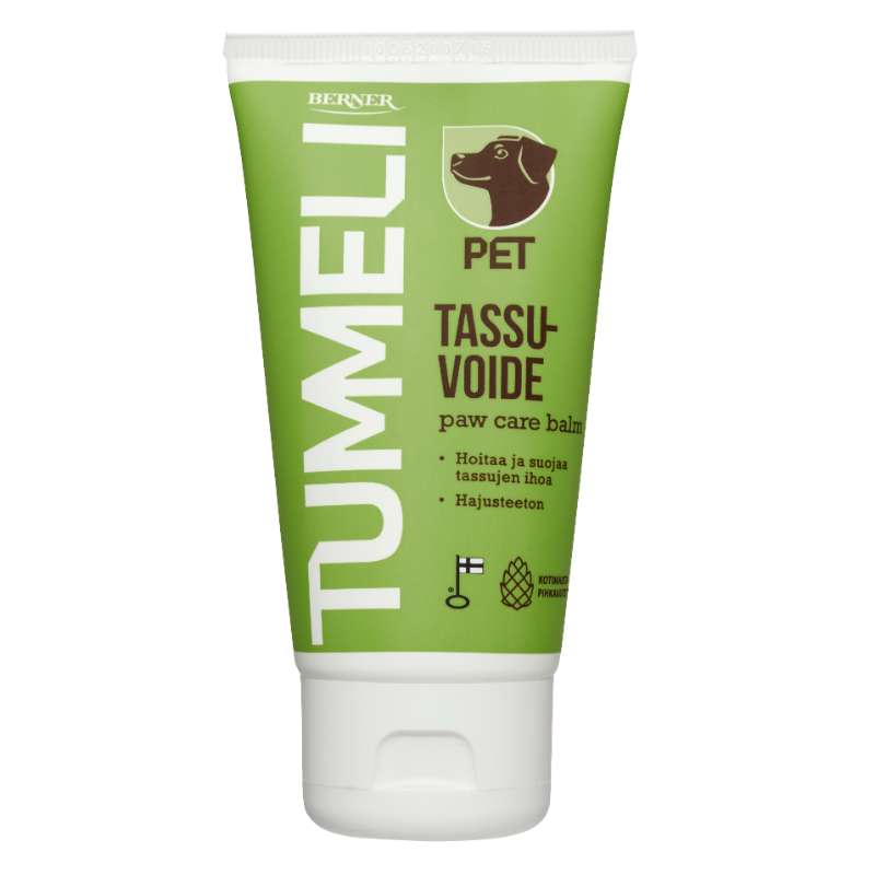 Tummeli Pet Tassuvoide hoitaa ja rauhoittaa ruhjeisia polkuanturoita ja lemmikin ihoa. Ylläpitää tassujen hyvinvointia ja ennaltaehkäisee halkeamia. Sisältää kotimaista pihkauutetta. Hajusteeton koostumus. Tummeli -tuotteet valmistetaan Heinävedellä.