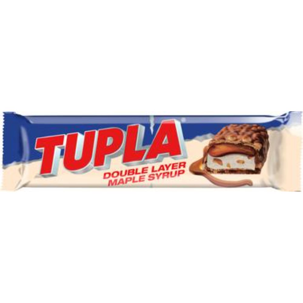 Tupla Double Layer Maple Syrup suklaapatukan sisus koostuu herkullisesta vaaleasta nougatista jossa on paahdetuja manteleita. Kokonaisuuden kruunaa vaahterasiirapinmakuinen toffeekerros sekä maitosuklaakuorrutteeseen lisätyt riisikrispit. Double Layer Maple Syrup:ssa on kaksi rouheaa palaa jotka tyydyttävät sekä suklaanhimon että lisäenergian tarpeen.
