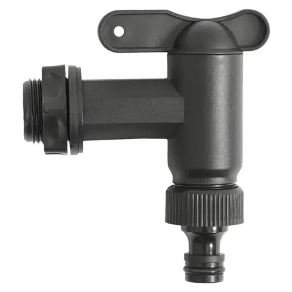 Sadevesitynnyrin hana 19mm liittimellä. Tynnyrihanan mukana tulee pikaliitin letkua varten. Puutarhahana helpottaa mm. sadeveden poistamista tynnyreistä sekä muista vesiastioista.