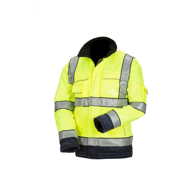 Materiaali: likaa ja vettä hylkivää beavernylon-kangasta. Materiaali huomioväreissä 80/20 polyesteri/ puuvilla. Kankaan paino 285 gr/m2. Tikkivuori 120 gr/m2 100% polyesteri lämpövanua. 10 taskua mm. kännykkätasku, irrotettava, henkilökorttitasku, 2 povitaskua, vetoketjullinen napoleontasku, 2 isoa läpällistä rintataskua, joista toinen vetoketjulla, sivutaskut vetoketjulla ja hiha tasku