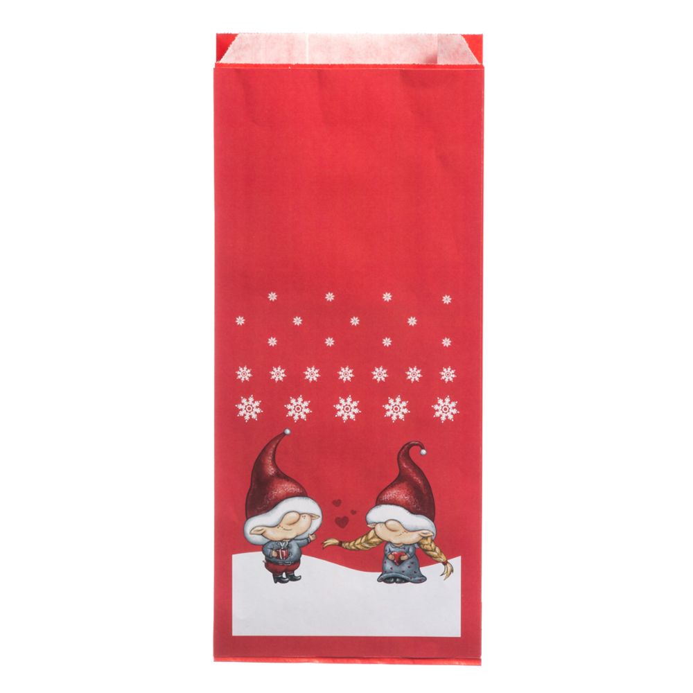 Tonttukuvioinen paperipussi, johon on mukava kääriä lahjoja ystäville ja perheenjäsenille!