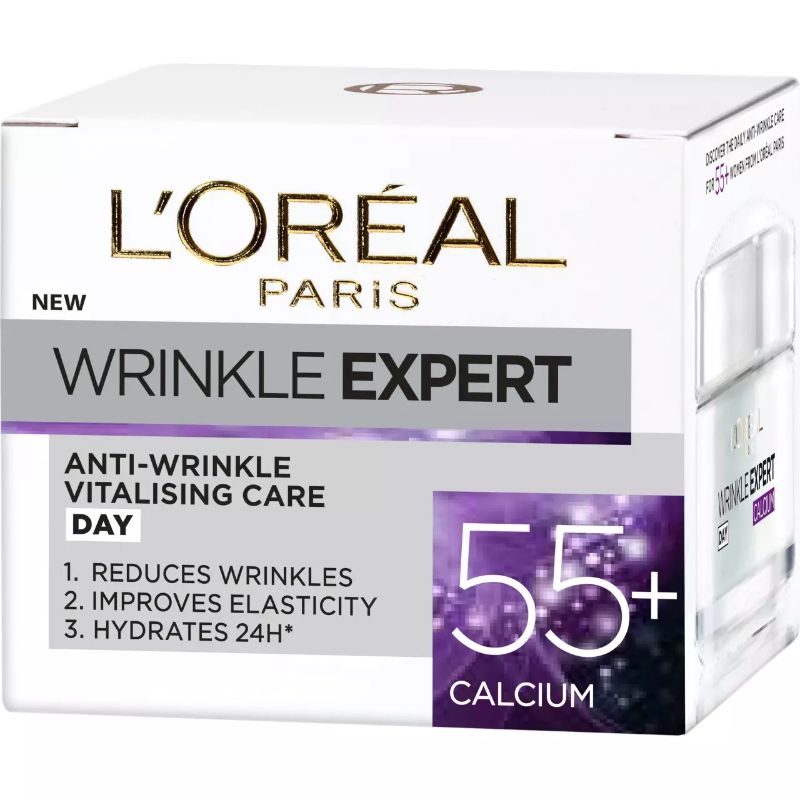 L’Oréal Paris Wrinkle Expert 55+ on kalsiumia sisältävä päivävoide ryppyjä vastaan. Ikääntyneen ihon päivävoide antaa iholle elinvoimaisuutta, silottaa ryppyjä ja kosteuttaa jopa 24 tunnin ajan. Wrinkle Expert 55+ on kehitetty erityisesti yli 55-vuotiaan ihon tarpeisiin.